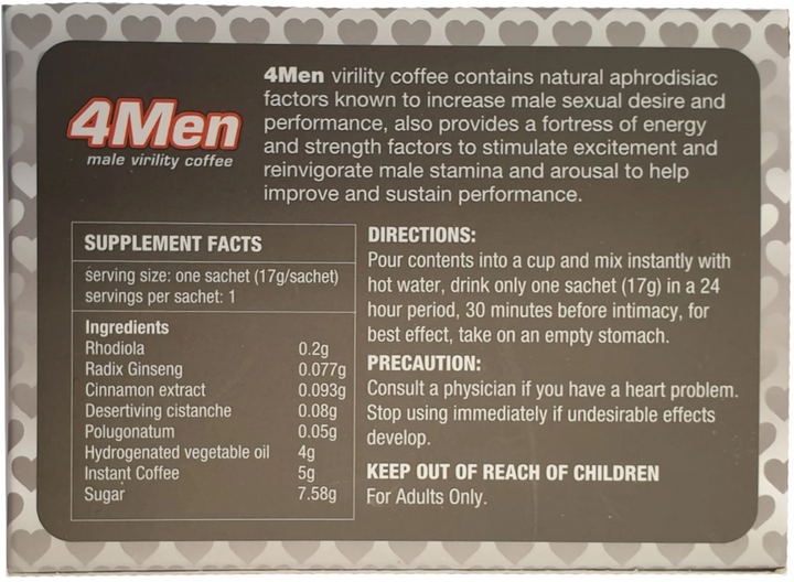 With just one cup, you'll feel re-energized, ready to take your sex life to an entirely new level of pleasure. Forget taking your time - Sex Coffee 4Men (2-Pack) will help you perform better and last longer every time!